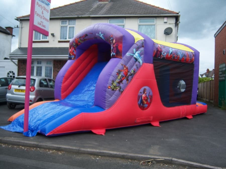 This inflatable assault course is 28ft long and is action hero themed, it's great for gardens not quite long enough to take the 40ft assault course or the 65ft Obstacle course.
